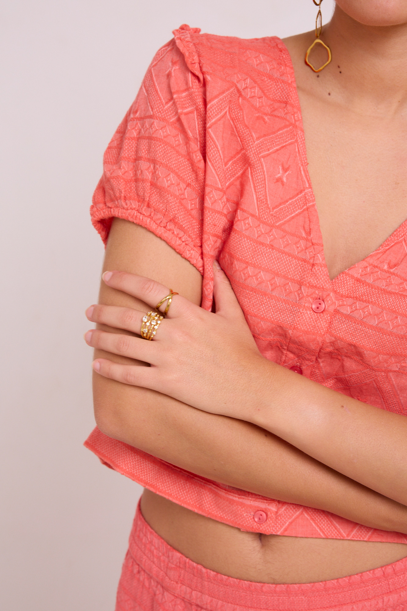 Anillo ajustable de circonitas disponible en distintas tonalidades.