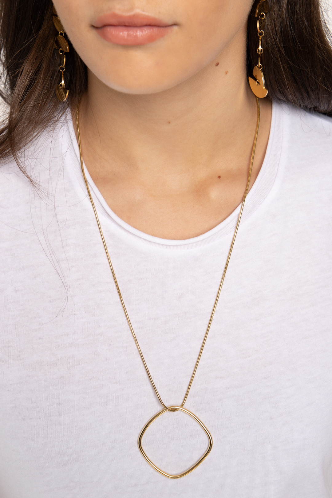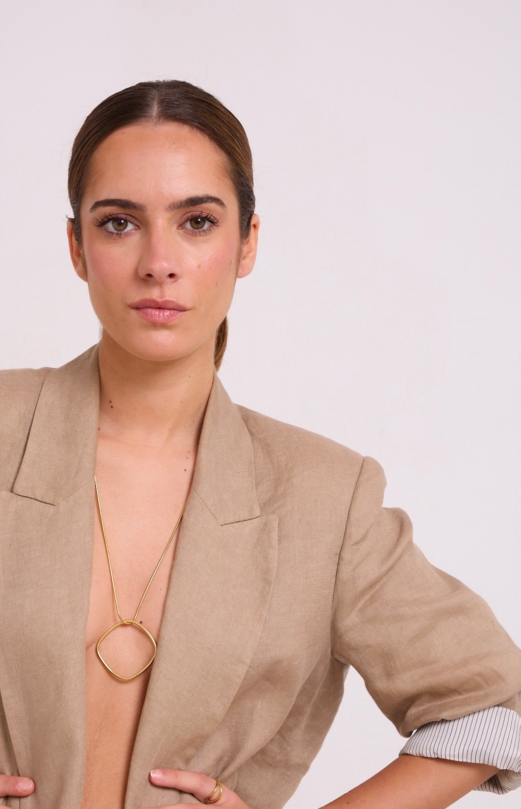 Collar de cadena con rombo colgante disponible en dorado y plata.