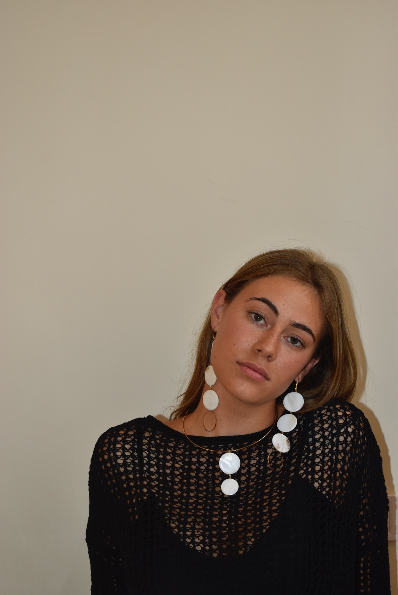 Chocker dorado de acero inoxidable con dos piedras de diferente tamaño de nácar.