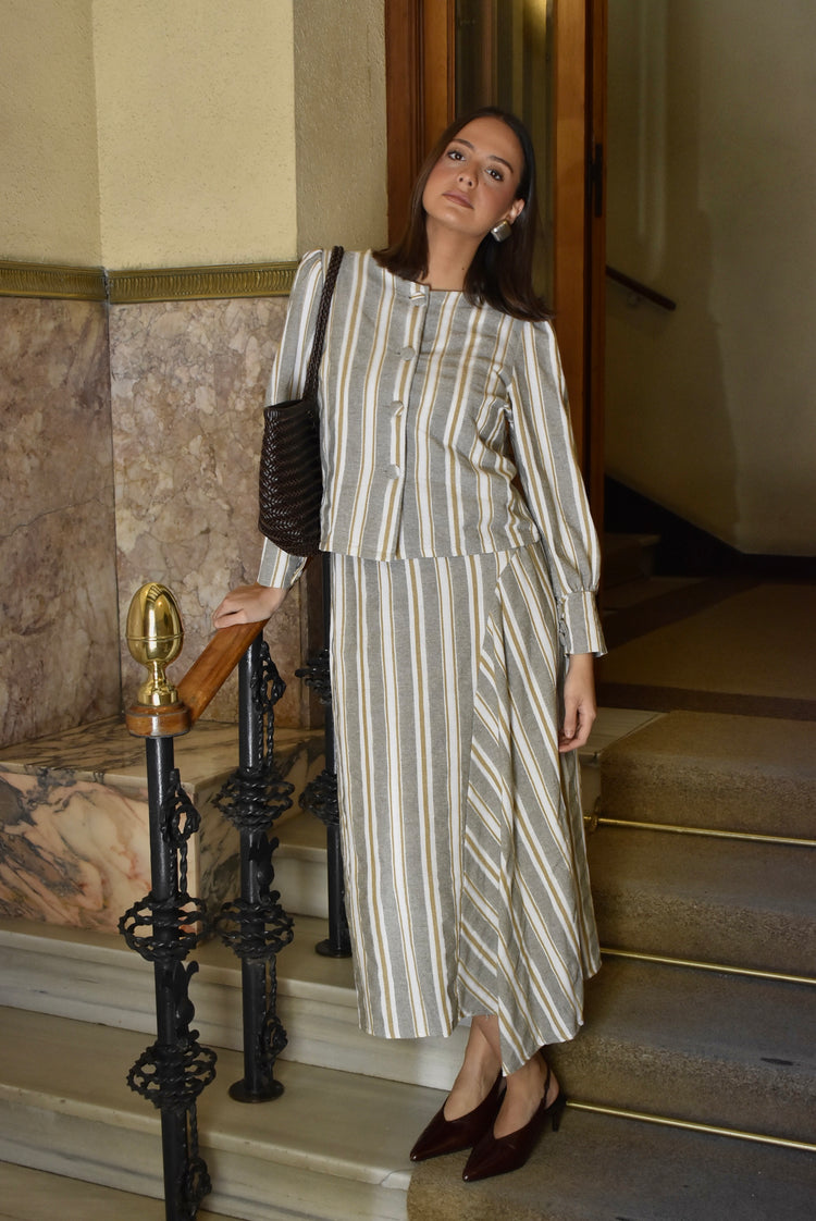Falda de rayas beige. Conjunto a la chaqueta Juliette.