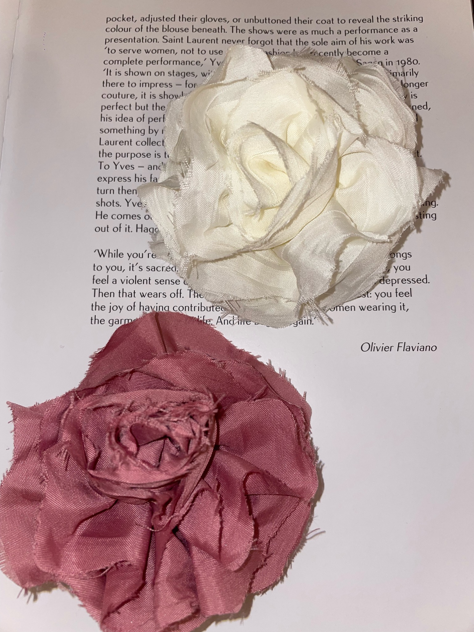Flor de color rosa o blanca perfecta para el pelo, ropa o cuello. En la parte posterior lleva una pinza e imperdible.