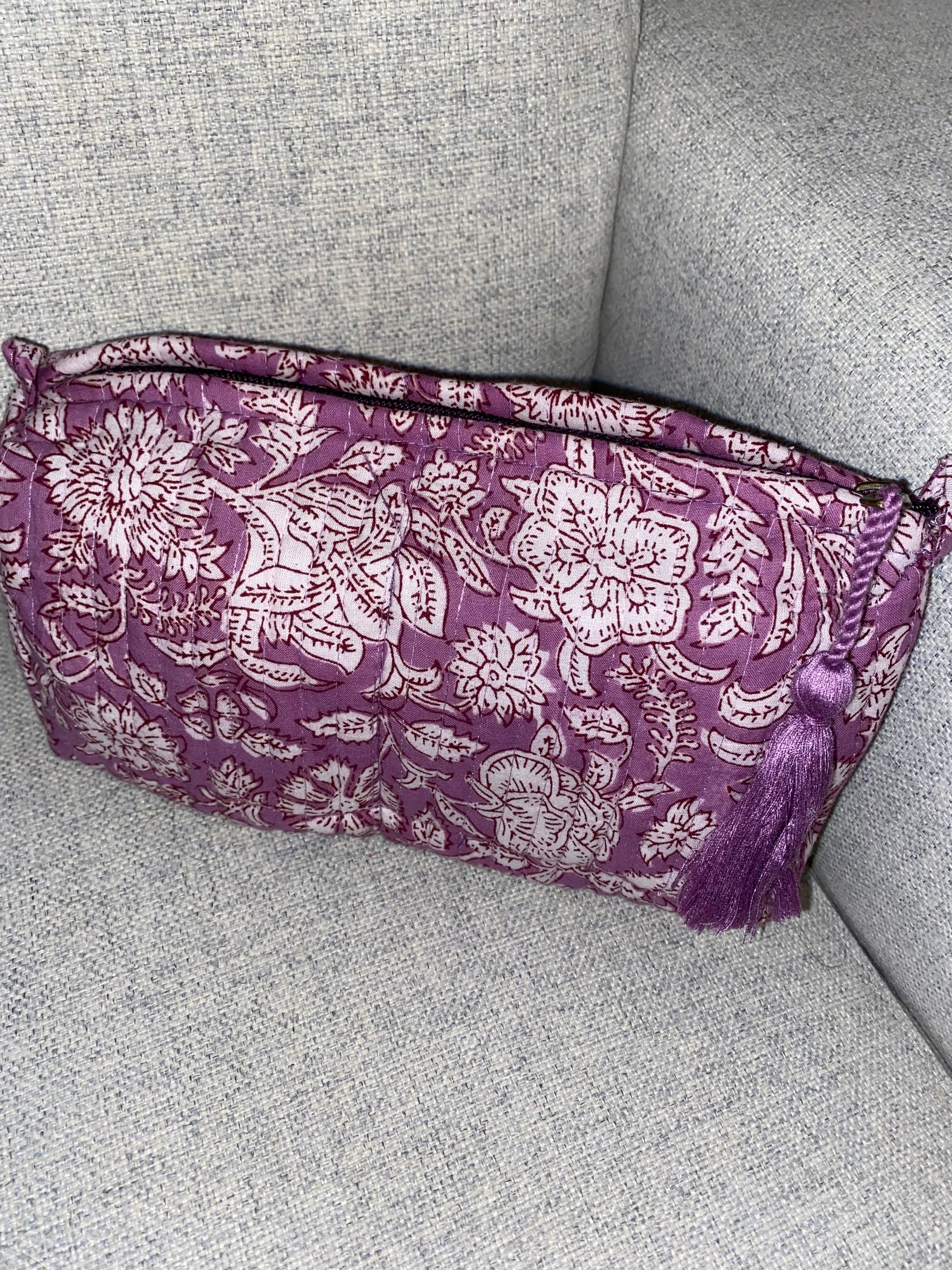 Neceser de algodón estampado con forro interior con 4 bolsillos interiores. Cierre superior con cremallera.