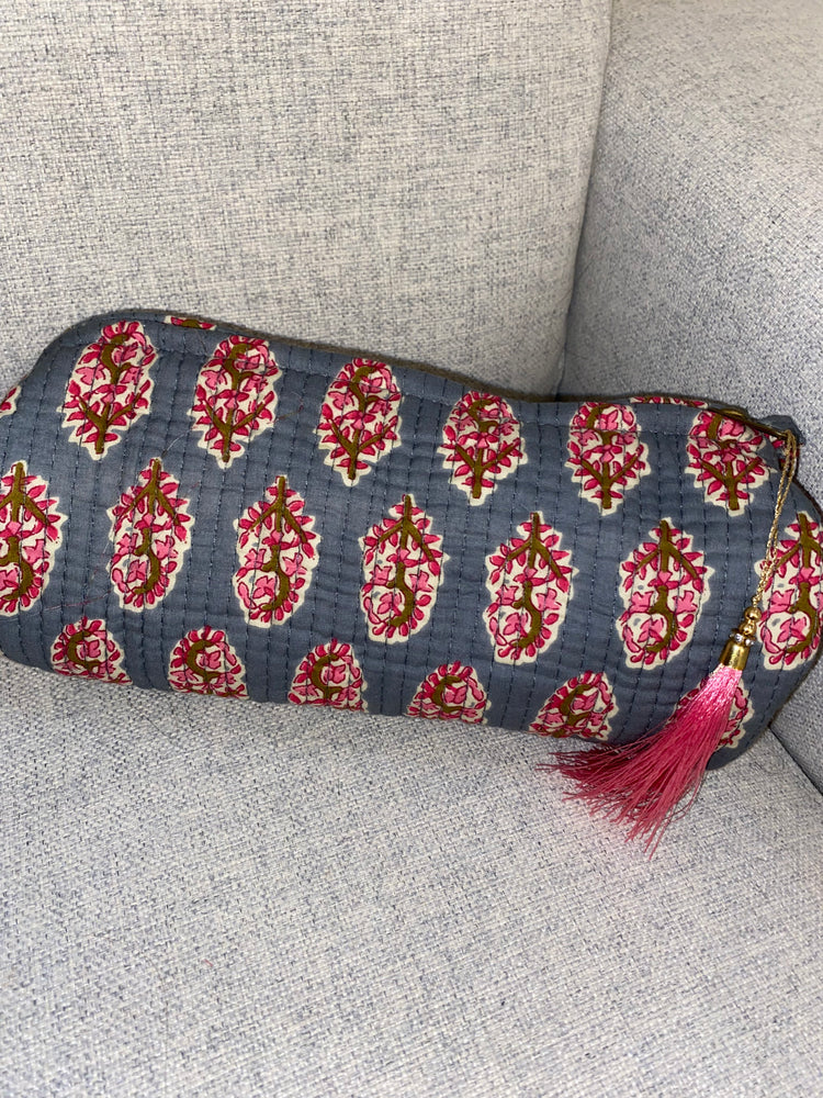Neceser de algodón estampado con forro interior con 4 bolsillos interiores. Cierre superior con cremallera.