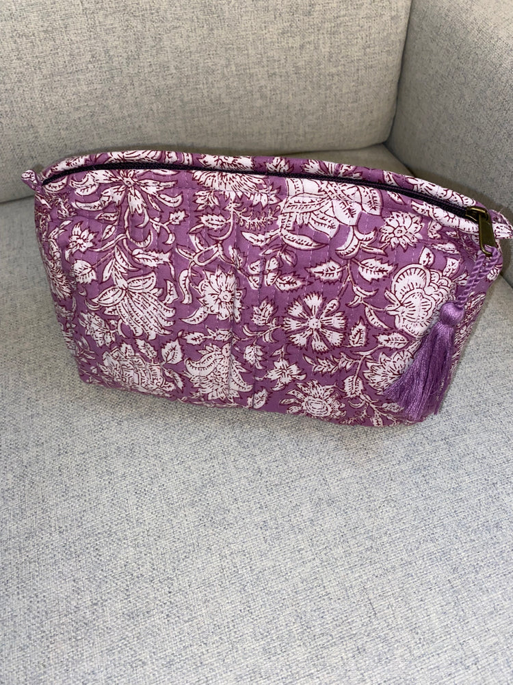 Neceser de algodón estampado con 4 bolsillos interiores. Cierre superior con cremallera.