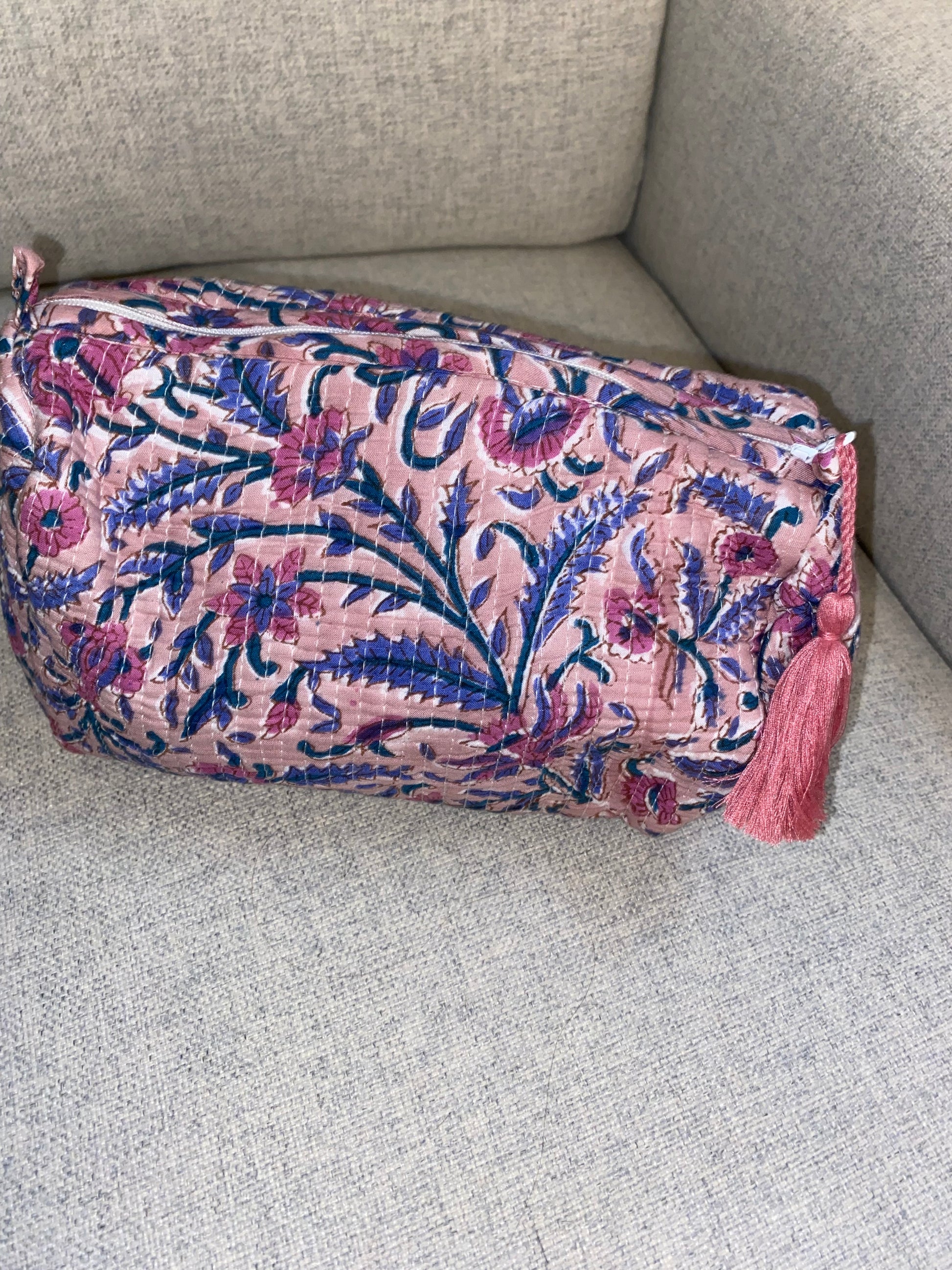 Neceser de algodón estampado con 4 bolsillos interiores. Cierre superior con cremallera.