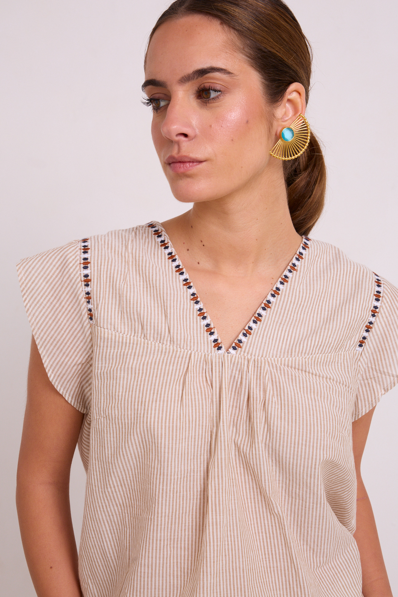 Pendientes en forma de abanico y piedra natural disponibles en varias tonalidades.