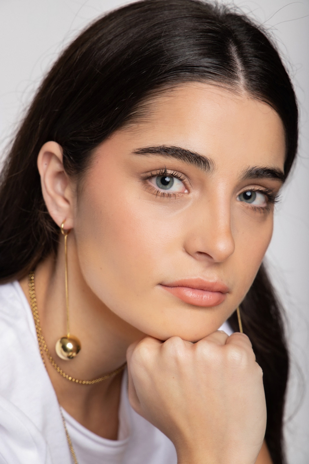 Pendientes de cadena de serpiente con bolas colgantes disponibles en dorado y plata.​