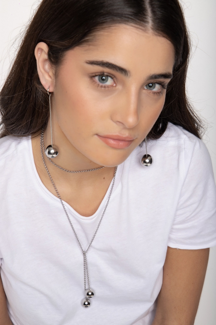 Pendientes de cadena de serpiente con bolas colgantes disponibles en dorado y plata.