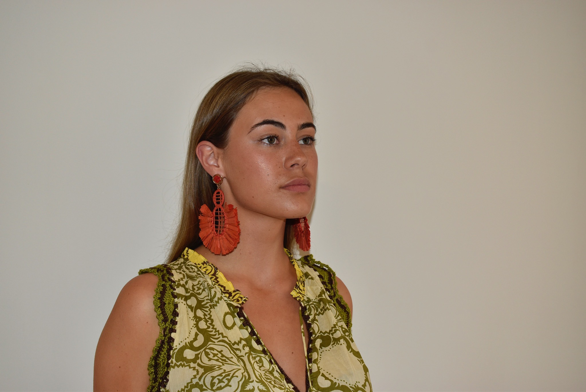 Pendientes de rafia disponibles en tono verde, azul, rojo y morado.