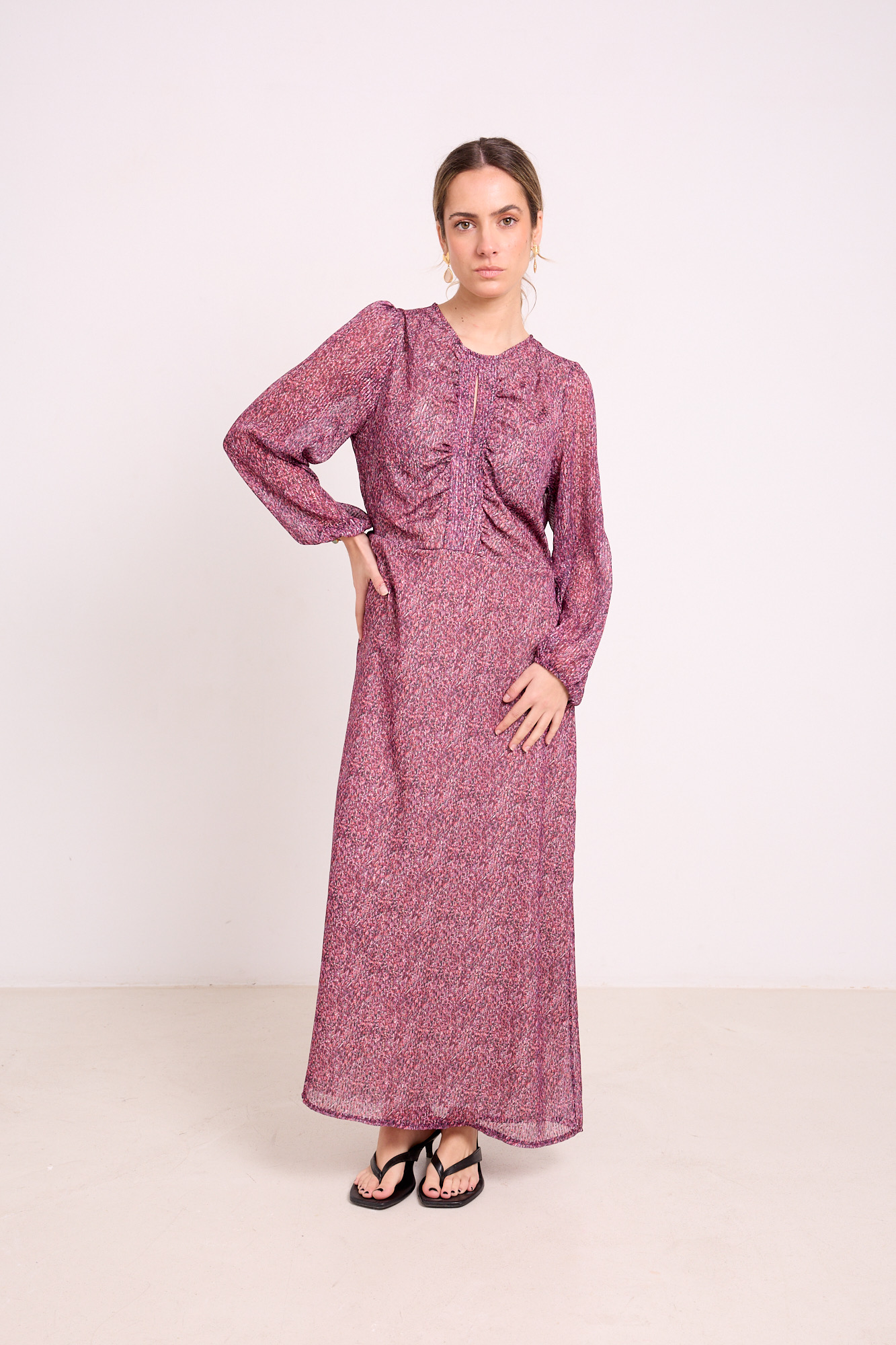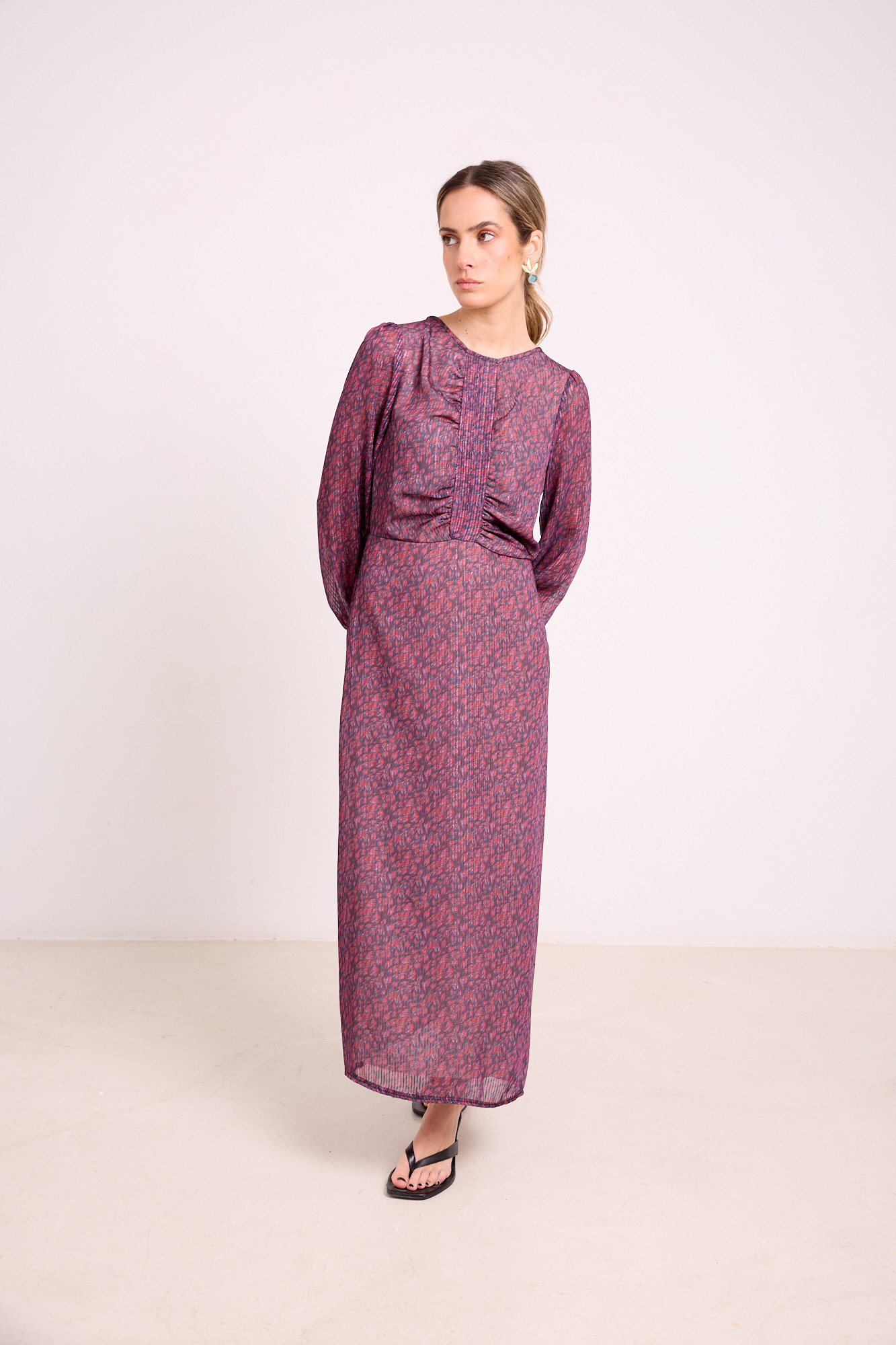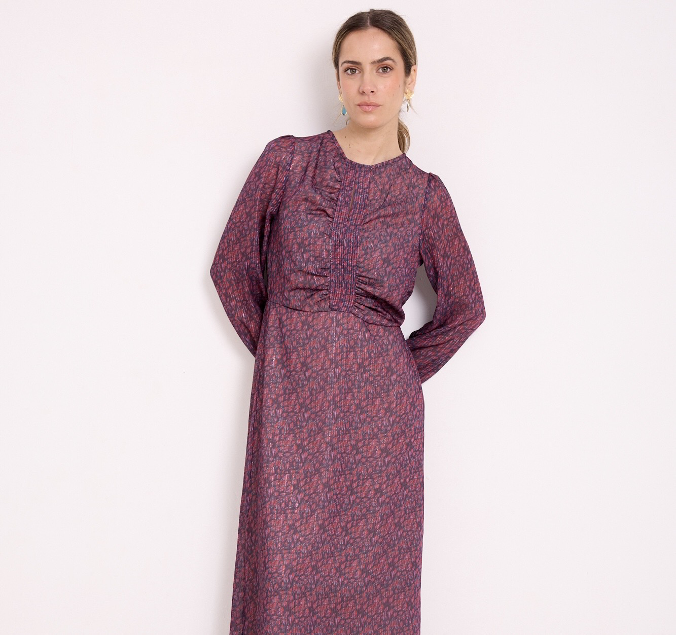 Vestido estampado midi de cuello redondo ideal para una ocasión especial.